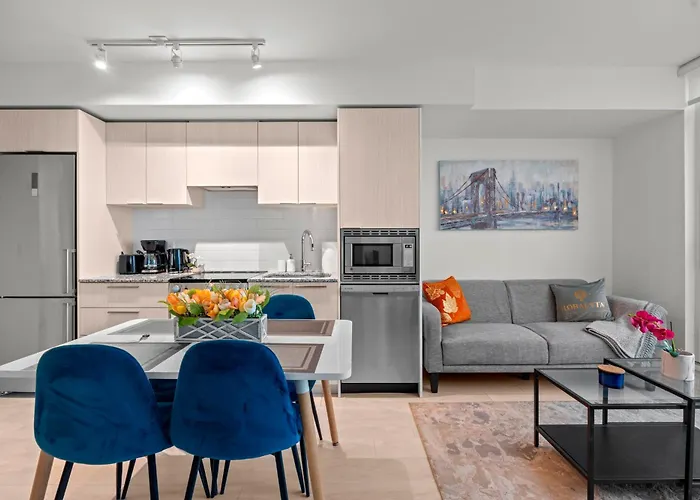 The 3-hectare municipally operated Riverdale Farm is just 1.9 km away, while Loftraum is in close proximity to the apartment. Attractions near the 65 m² apartment include the long-standing multilevel urban mall "CF Toronto Eaton Centre", merely 11 minutes' walk away. New Modern 1Bd & Den In Downtown Toronto Apartment is also nestled 700 m from Yonge-Dundas Public Square.